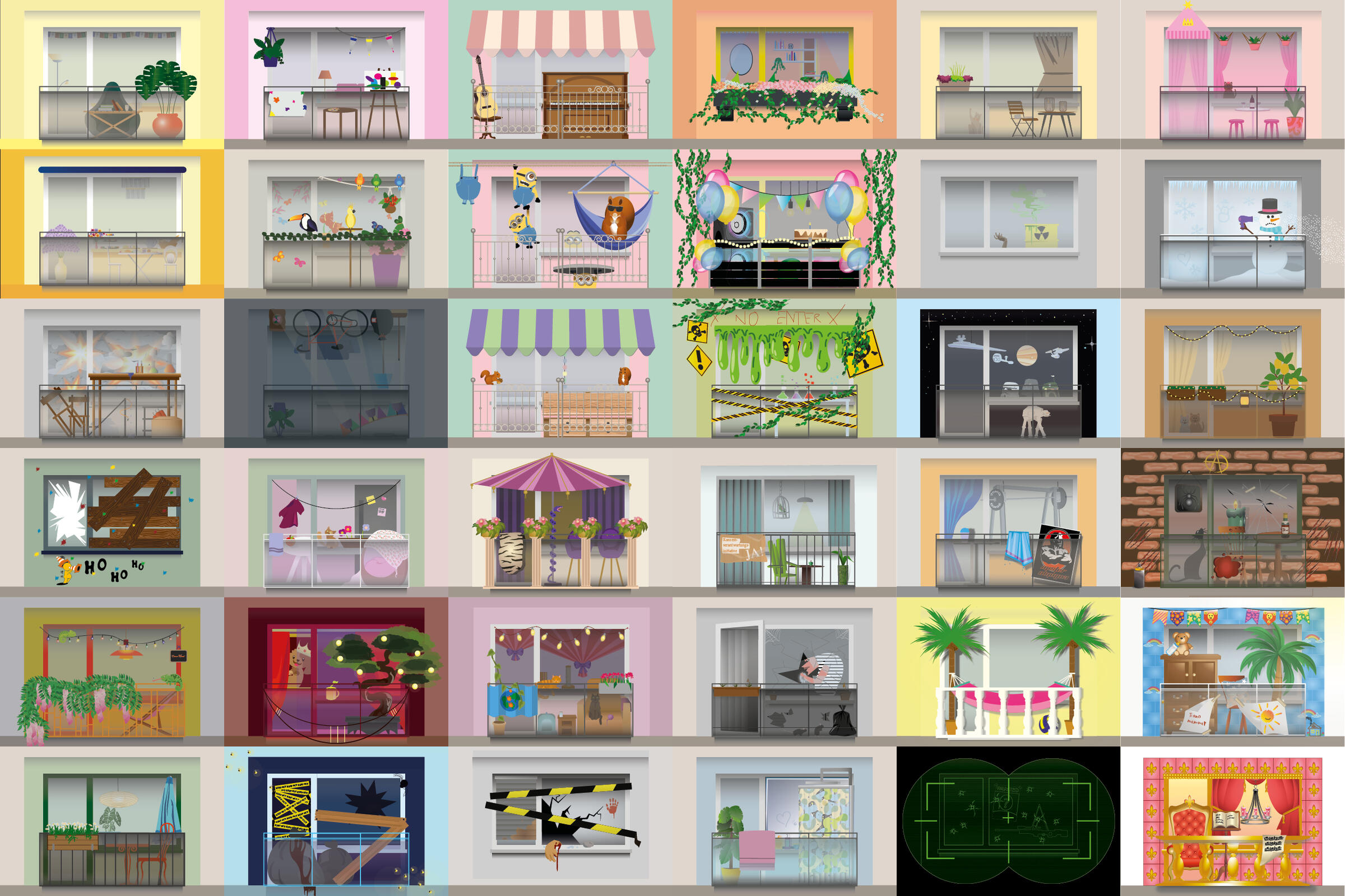 «Alles Fassade», Vektorgrafik, Grafisches Gestalten, 2ef GK & 3h KI, Erhardt, Mehta & Weick, FMS Basel, 2025«Alles Fassade», Vektorgrafik, Grafisches Gestalten, 2ef GK & 3h KI, Erhardt, Mehta & Weick, FMS Basel, 2025